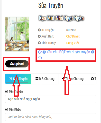 Bước 3: Click vào nút «Yêu Cầu Duyệt Truyện»