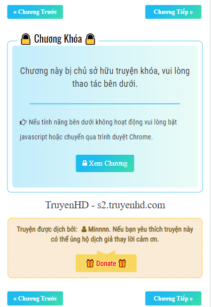 - Ưu điểm: Độc giả không cần phải đăng nhập, chỉ cần ấn vào nút [Xem Chương]. Chống copy hiệu quả với copy thủ công và hạn chế được một số tool copy