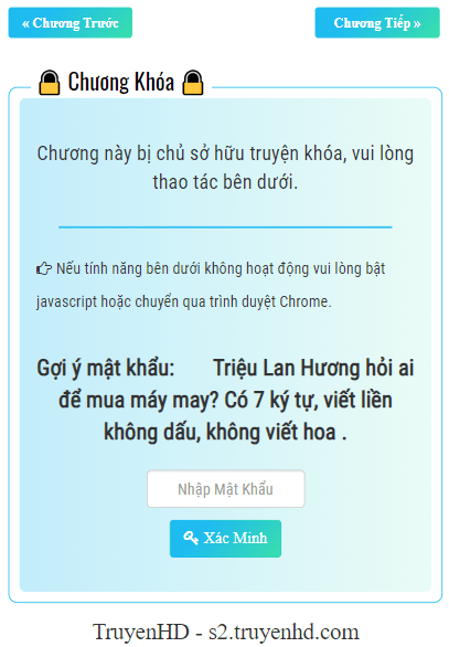 Chống copy truyện hiệu quả khi đặt mật khẩu trên các chương truyện